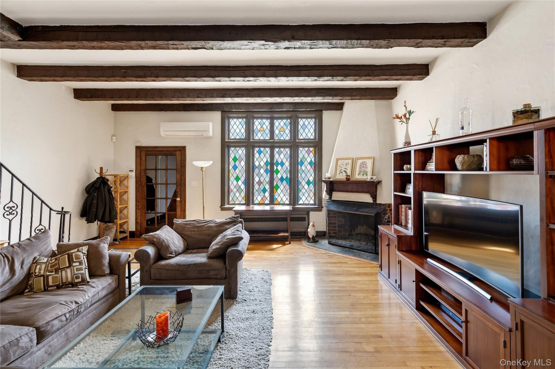 Welcome home to this beautiful Wolosoff Brothers Townhome on 68th Avenue in charming Forest Hills. Most identifiable by its Tudor exterior and stained-glass casement windows, soaring ceilings with rafters and corner wood burning fireplace, it has been lovingly updated to modern living with ductless air conditioning, a stunning chef's kitchen and Pella French doors leading to the relaxed stone patio adorned with mature plantings and clam shell ground cover.An open chef's kitchen invites you to entertain all day with Wolf Stove, paneled Sub-Zero side-by-side Fridge Freezer, quartz counters, custom walnut cabinets, microwave drawer & farmhouse steel sink; finished off with a sizable wine fridge and pantry nook near the windows. Recessed lighting and built-in ceiling speakers make it feel like home with your favorite tunes.A half bath on the basement landing provides an accessible powder room. Living room with soaring ceilings, tall stained-glass wall of front windows, an entry foyer with coat closet. The stairs to the second floor lead to high ceilings with skylight, 2 hall closets, niche shelving and three bedrooms. Sizable bathroom with shower and jetted tub has a Jack & Jill door to the primary bedroom with a wall of custom closets. The second bedroom has glass French closet doors with custom closets. The third bedroom with closet can flex for your needs. Fully finished basement with full bathroom and stair access to the back patio provide all the extra space you could wish for. One car garage is freshly painted.Meaningful updates throughout the home inside and out make this your next best place to call home. The location is a wonderful respite from the hustle and bustle of Queens Blvd, Austin St, LIRR, Metropolitan Ave. yet all are within reach. Adjacent to Forest Hills Gardens, near PS 144, restaurants, grocery stores, Forest Hills Stadium, West Side Tennis Club, Forest Park. Bus lines: Q23 1 block away, Q54 5 blocks away. Close proximity to LGA & JFK. Come see what Forest Hills living is all about!