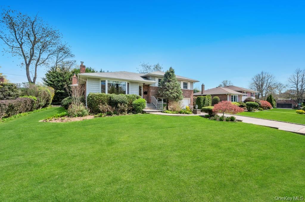 Welcome to 98 Larch Drive, Manhasset Hills - a beautifully expanded split-level home offering 4 bedrooms and 2 full bathrooms, perfectly situated on a desirable block .This well-maintained property features exceptional curb appeal, highlighted by a manicured front lawn and an oversized driveway with elegant brick trim leading to the front entrance. The serene, private backyard offers the ideal setting for both entertaining and quiet relaxation, complete with a spacious patio.Upon entry, you are greeted by a bright and inviting living and dining area creating an open and airy atmosphere ideal for both large gatherings and intimate evenings. The main level also includes a spacious kitchen and adjoining den, with vaulted ceiling designed for bringing in bright light and functionality and comfort. The den features a wood-burning fireplace and recess lighting making the room so inviting and a convenient side access door to the backyard, seamlessly extending your living space outdoors.A separate-level family room provides an additional retreat, perfect for relaxing or entertaining. The lower level basement offers a generously sized open area with endless possibilities-ideal for a playroom, home office, or gym -along with a utility room, dedicated laundry room, and ample storage closets The kitchen is thoughtfully designed for both everyday living and entertaining, featuring stainless steel appliances, abundant cabinetry, and ample workspace for cooking and hosting. 2 pendant lights and recess lightingUpstairs, the home continues to impress with three well-proportioned bedrooms. The primary suite includes an en-suite bathroom and large windows that fill the space with natural light. Two additional bedrooms features generous closet space. A full hall bathroom and additional storage closet complete this level.Additional highlights include:One-car garage and oversized driveway for ample parkingHardwood flooring in the living room and denThree skylights enhancing natural light throughoutGas heating with efficient 3-zone heating systemCentral air conditioning for year-round comfortAlarm system and in-ground sprinkler systemShades and blindsIdeally located near the Long Island Expressway and Northern State Parkway, this home offers both convenience and comfort.Don't miss the opportunity to own this exceptional property and enjoy everything it has to offer.
